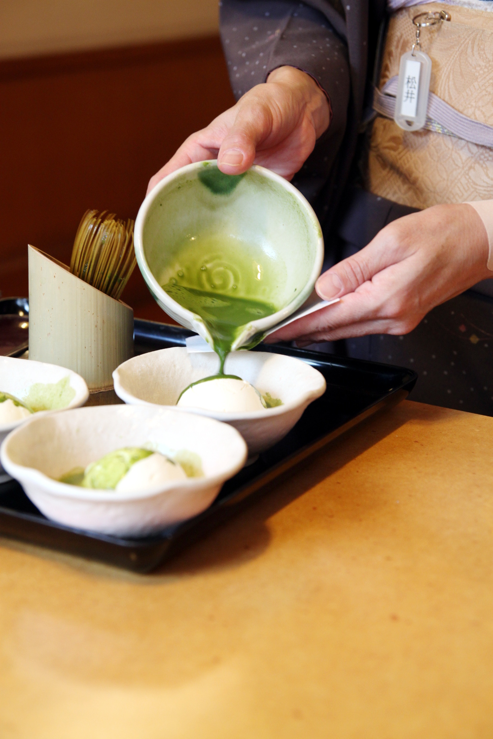 And onto arguably my favourite course of the meal- ice cream! The waitress comes with perfectly round scoops of vanilla ice cream, and then whips up the matcha at the table before pouring it onto the ice cream. It’s the perfect ratio of matcha to ice cream to balance the bitterness of the green tea to the sweetness of the vanilla.