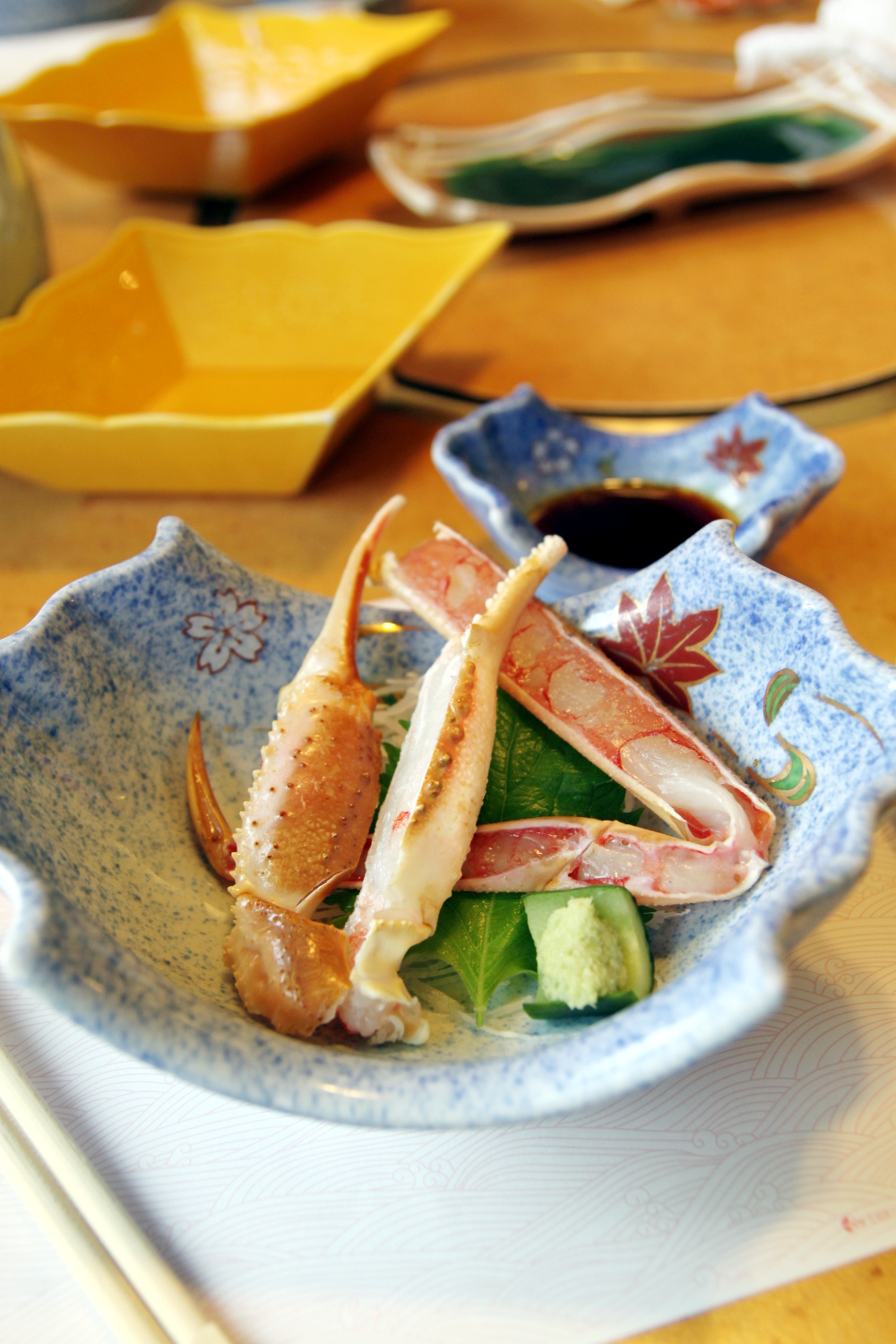 We were advised by a friend to visit during lunch hours, as their lunch sets are much cheaper than their dinner. For a 9 course crab feast, their lunch sets are great value- we picked the Ruri set for 4320yen per person and the Moegi set for 3780yen to try a bit of everything.